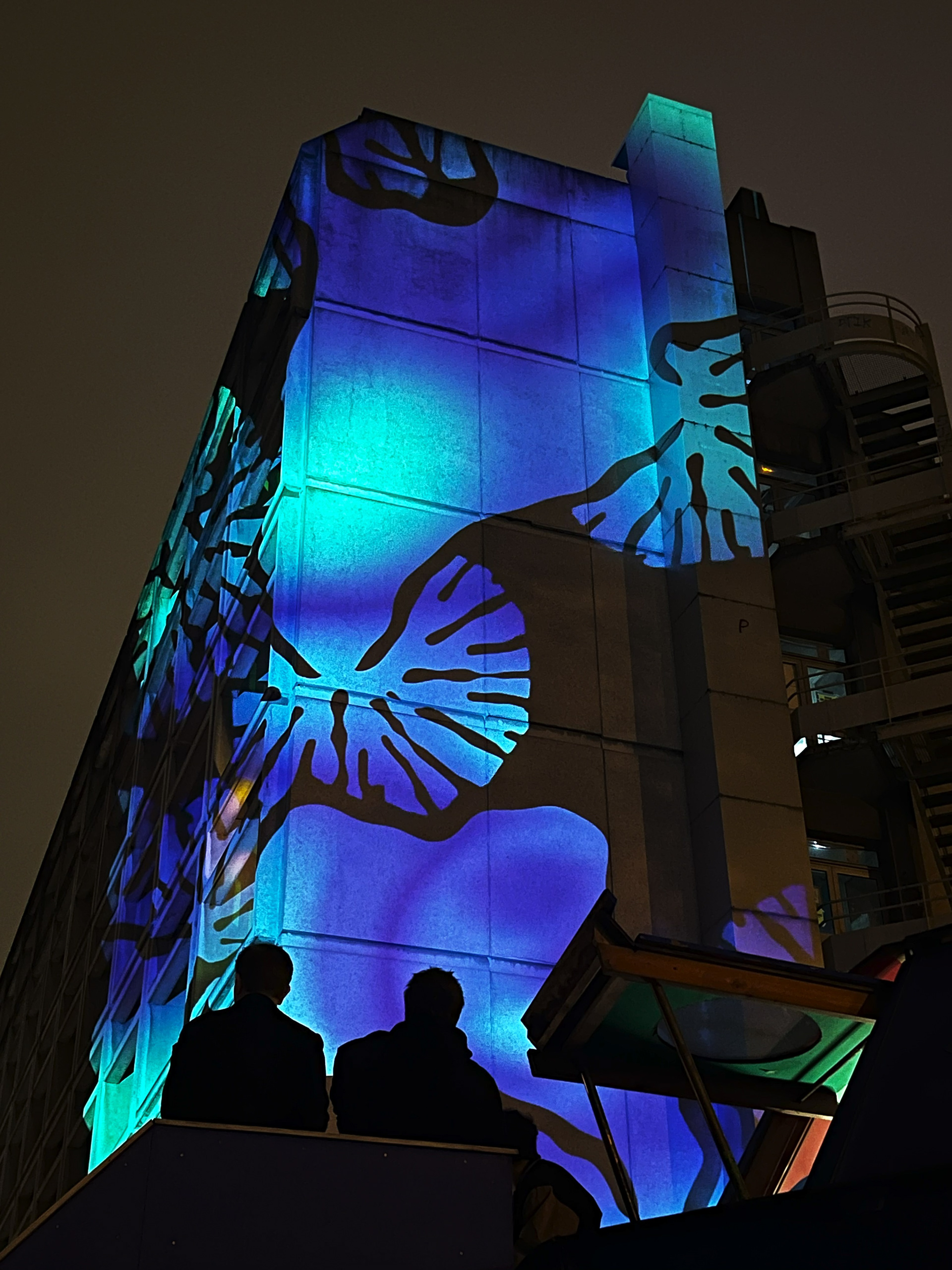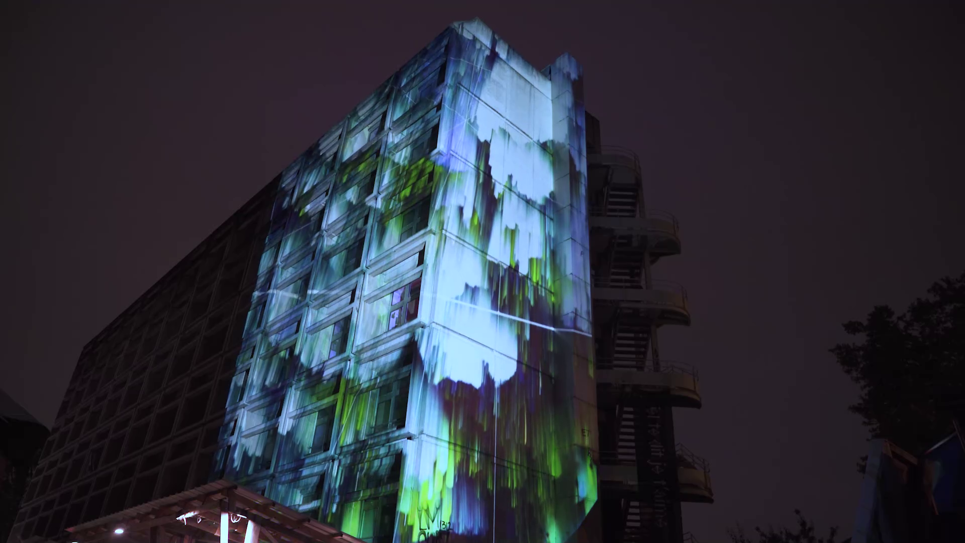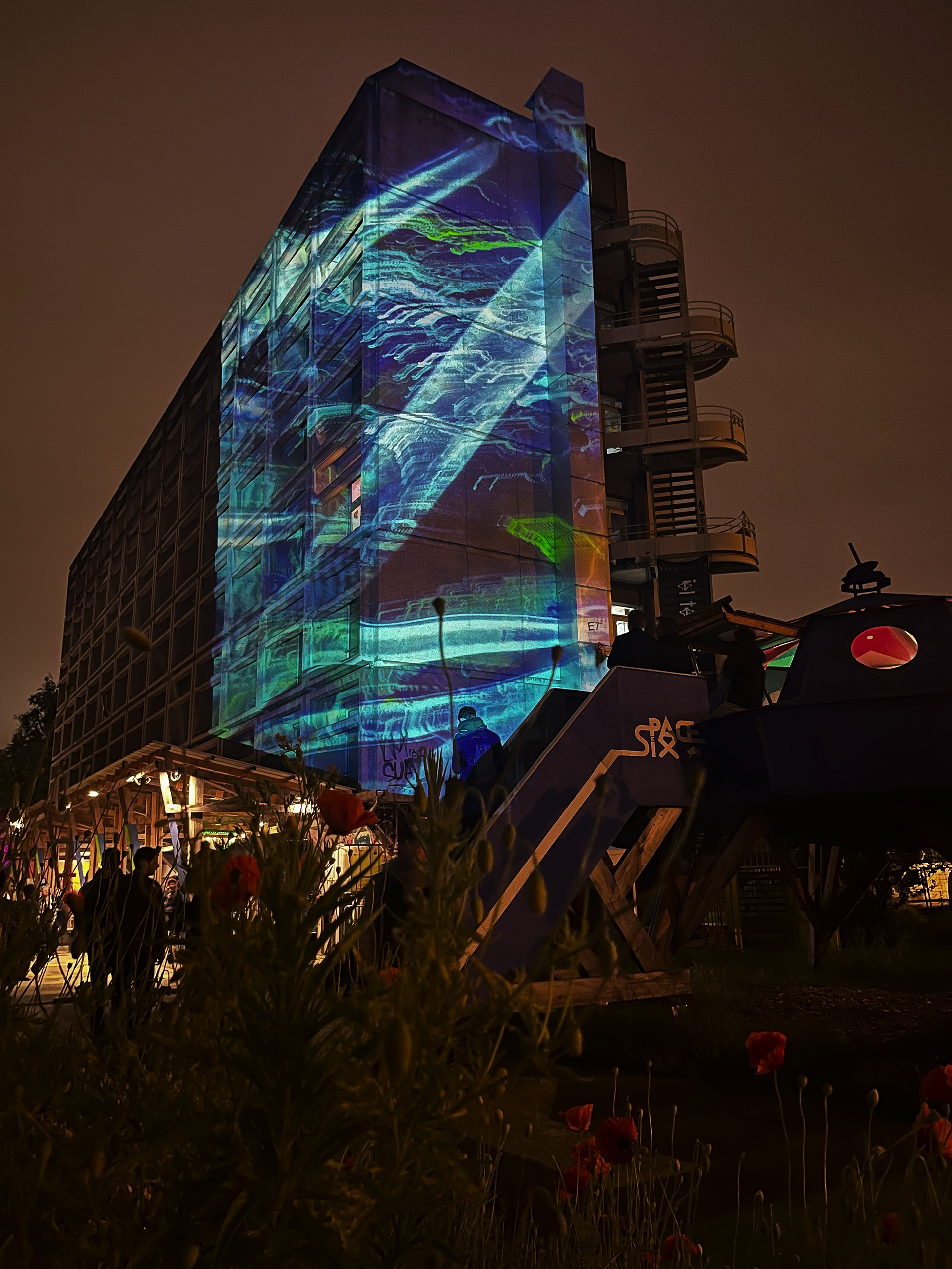 Mapping monumental sur la façade du 6b, Saint-Denis, dans le cadre de la Nuit blanche 2024 avec le soutien de la Ville de Saint-Denis