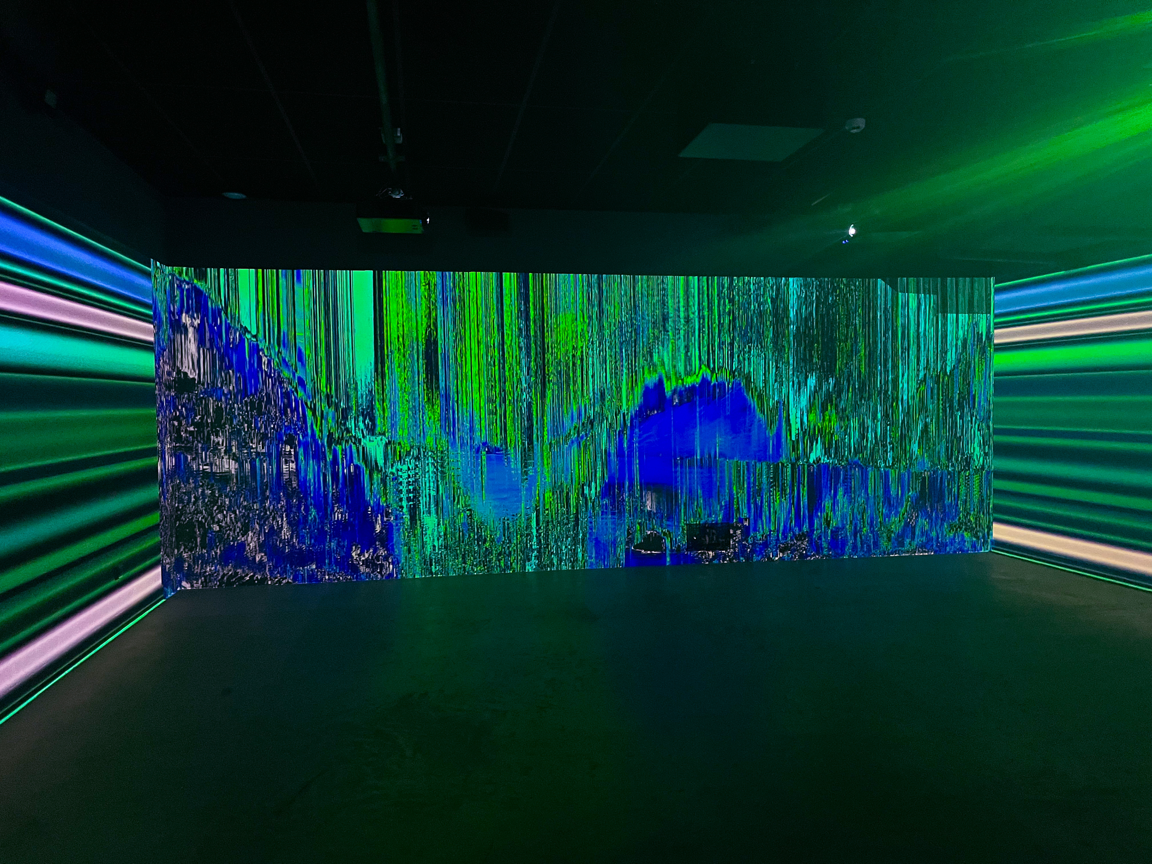 Re_generate est une œuvre vidéo immersive créée lors d’une résidence et diffusée pendant trois semaines à Communale Saint-Ouen, en février et mars 2025. Cette résidence à 360° nous a conduits à repenser le paysage à travers des outils génératifs et un dialogue avec des intelligences artificielles. Cette confrontation avec les nouvelles technologies ouvre des fenêtres sur un monde fantasmé par les algorithmes que nous explorons et décortiquons jusqu’à l’épuisement.